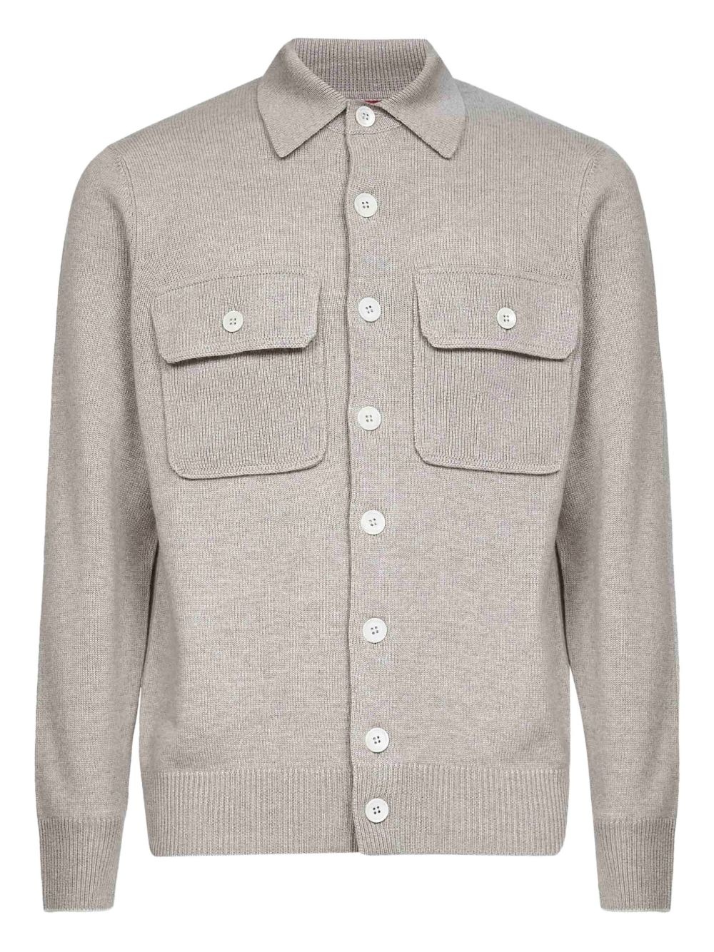 ribbed buttoned overshirt Highlights - Grey - Button placket - Patch chest pockets - Ribbed cuffs - Ribbed bottom band Made in Italy Composition Cashmere 100% Washing instructions Read Manufacturer Guidelines