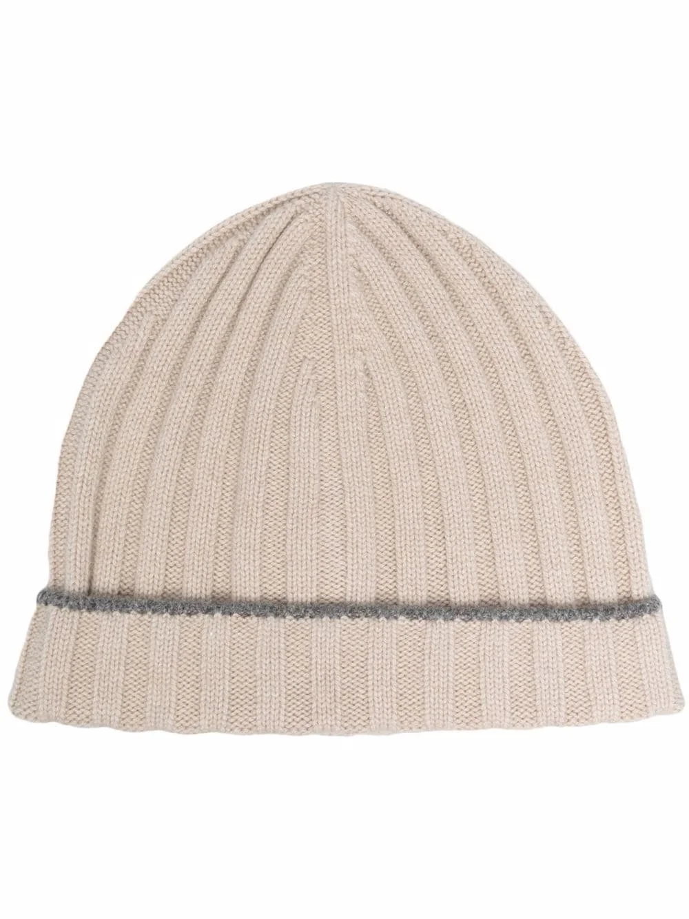 ribbed cashmere beanie beige/dark grey cashmere ribbed detailing fine knit stretch-design Made in Italy Composition Cashmere 100% Washing instructions Hand Wash