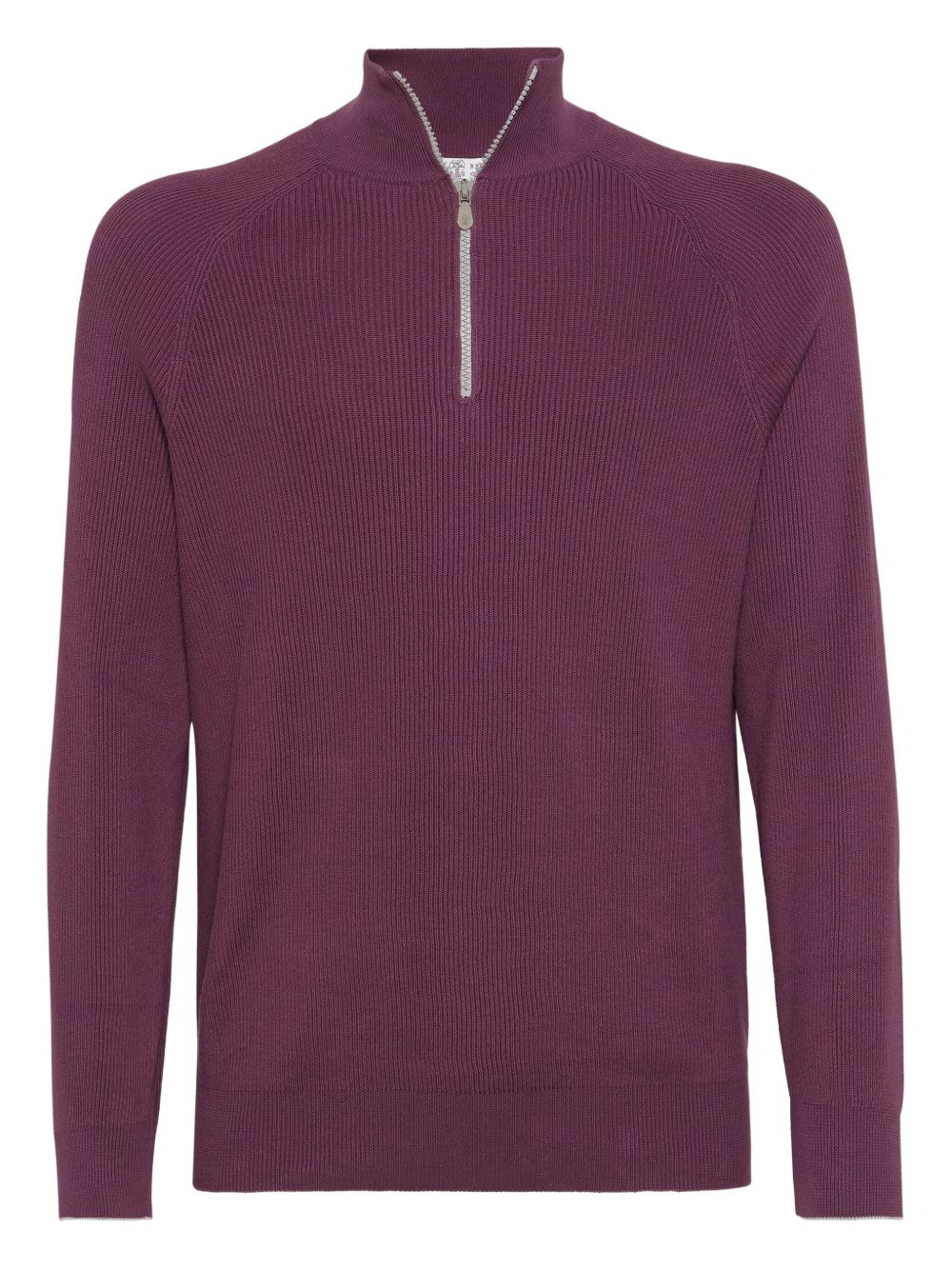ribbed cotton sweater Highlights - Burgundy - Ribbed knit - Zip fastening - High neck - Long sleeves - Raglan sleeves Made in Italy Composition Cotton 100% Washing instructions Hand Wash