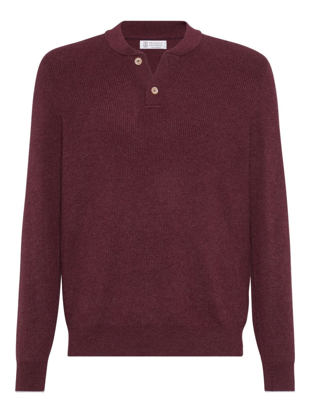 ribbed henley sweater Highlights - Bordeaux - Ribbed knit - Henley neckline - Button placket - Long sleeves - Straight hem Made in Italy Composition Cashmere 100% Washing instructions Hand Wash