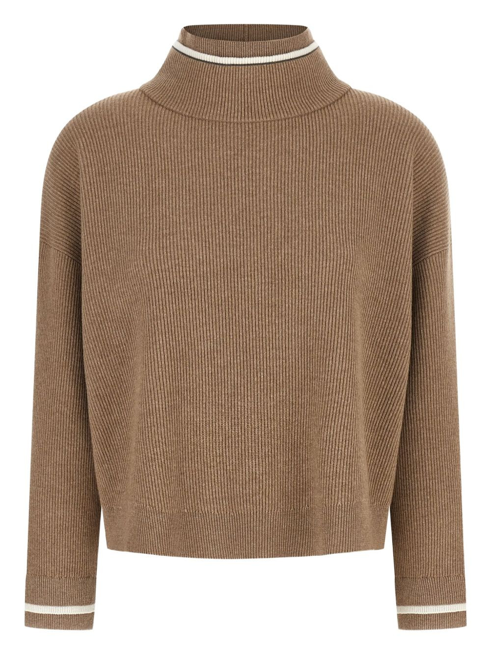 ribbed high-neck sweater Highlights - Brown - Ribbed knit - Contrast tipping detail Made in Italy Composition Virgin Wool 60%, RWS Wool 30%, Silk 10% Washing instructions Read Manufacturer Guidelines