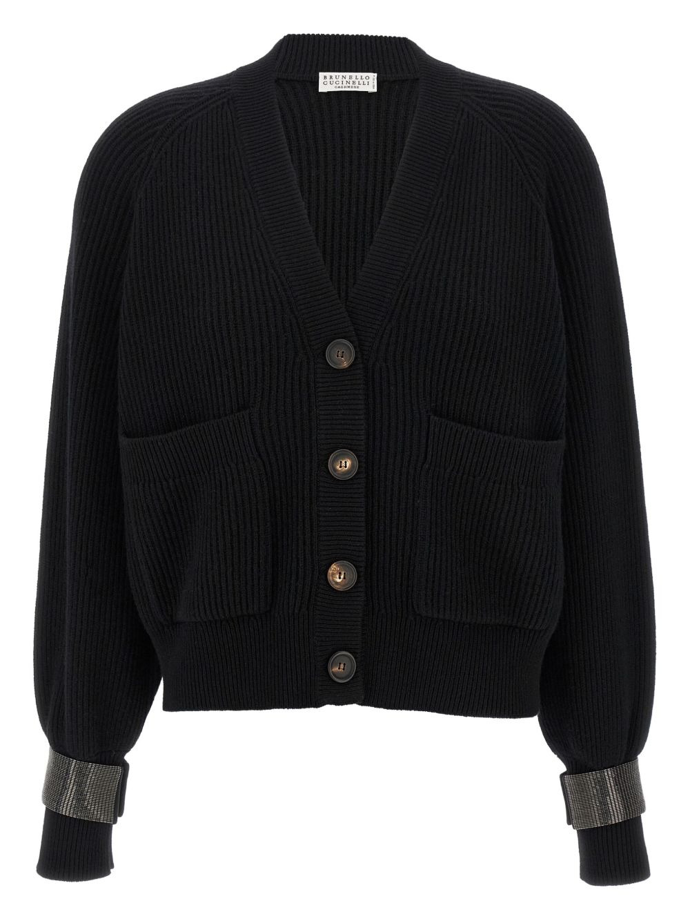ribbed jewel-cuff cardigan Highlights - Black - V-neck - Button front fastening - Patch pockets - English rib knit - Removable jewel cuffs Made in Italy Composition Cashmere 100% Washing instructions Read Manufacturer Guidelines