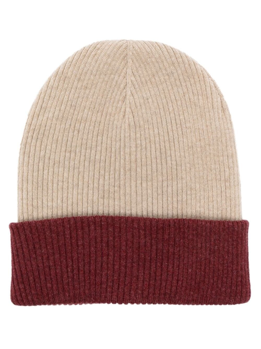 ribbed-knit cashmere beanie Highlights - Sand beige/bordeaux red - Cashmere - Ribbed knit - Turn-up brim - Slip-on style Made in Italy Composition Cashmere 100% Washing instructions Hand Wash