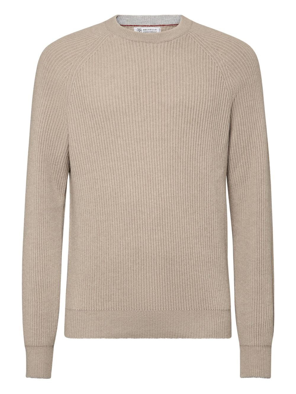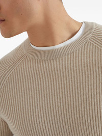 ribbed-knit cashmere jumper Highlights - Beige - Ribbed knit - Crew neck - Long sleeves - Straight hem Made in Italy Composition Cashmere 100% SIZE & FIT FittingInformation This piece fits true to size. We recommend you get your regular size Cut for a relaxed fit Made with a mid-weight fabric Washing instructions Hand Wash