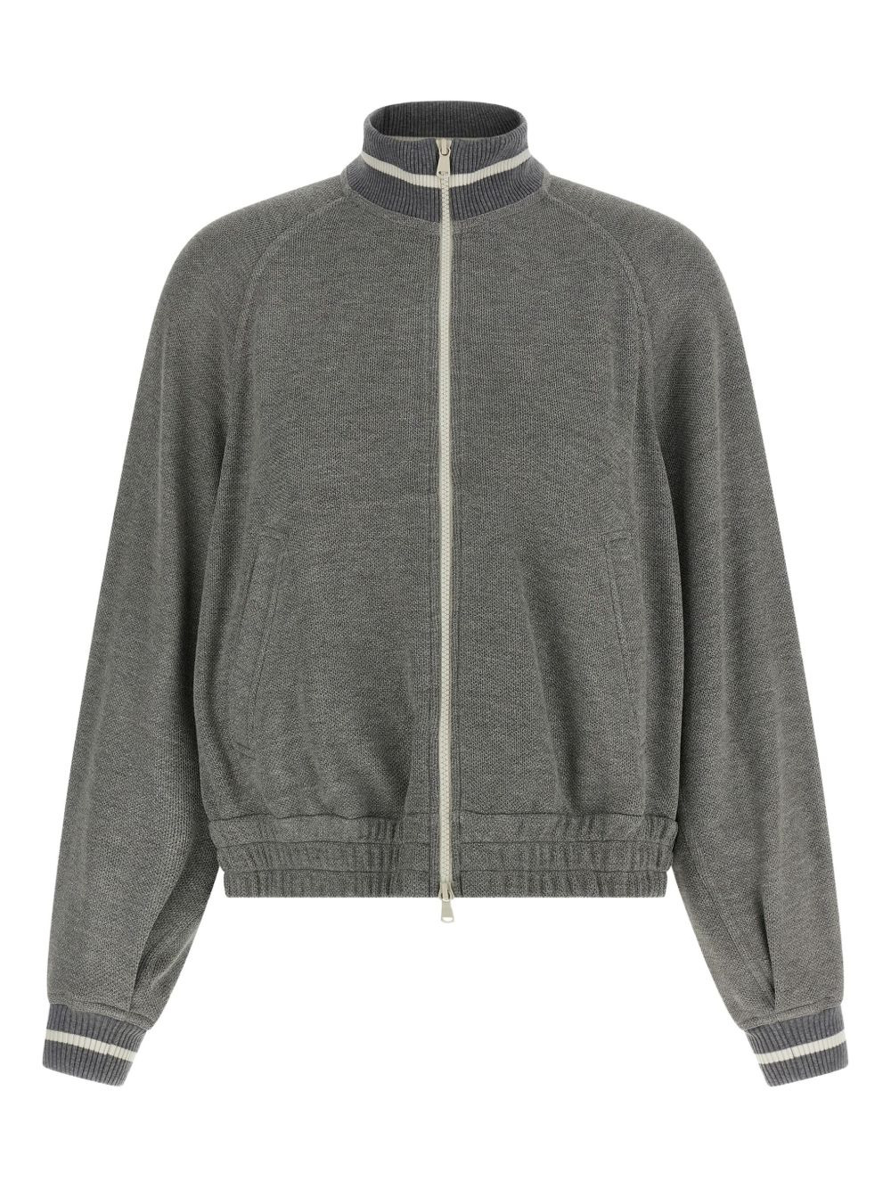 ribbed-knit cropped bomber jacket Highlights - Grey - Pique texture - High neck - Front zip closure - Side pockets - Ribbed-knit cuffs Made in Italy Composition Viscose 62%, Cotton 33%, Polyester 5% Washing instructions Read Manufacturer Guidelines