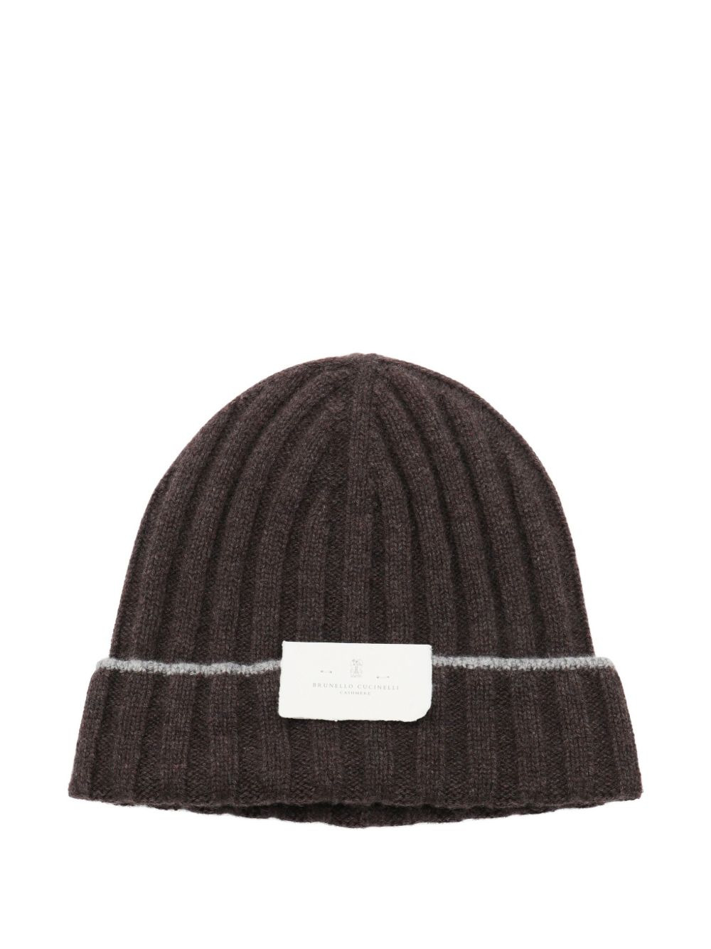 ribbed-knit logo-patch beanie hat Highlights - Brown - Ribbed knit - Logo patch - Grey trim - Folded brim - Wool Made in Italy Composition Wool 100%, Cashmere 100%