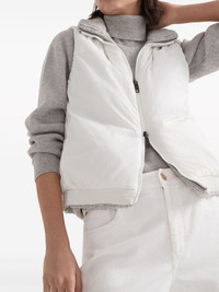 Cashmere Feather yarn reversible knit down vest with monili