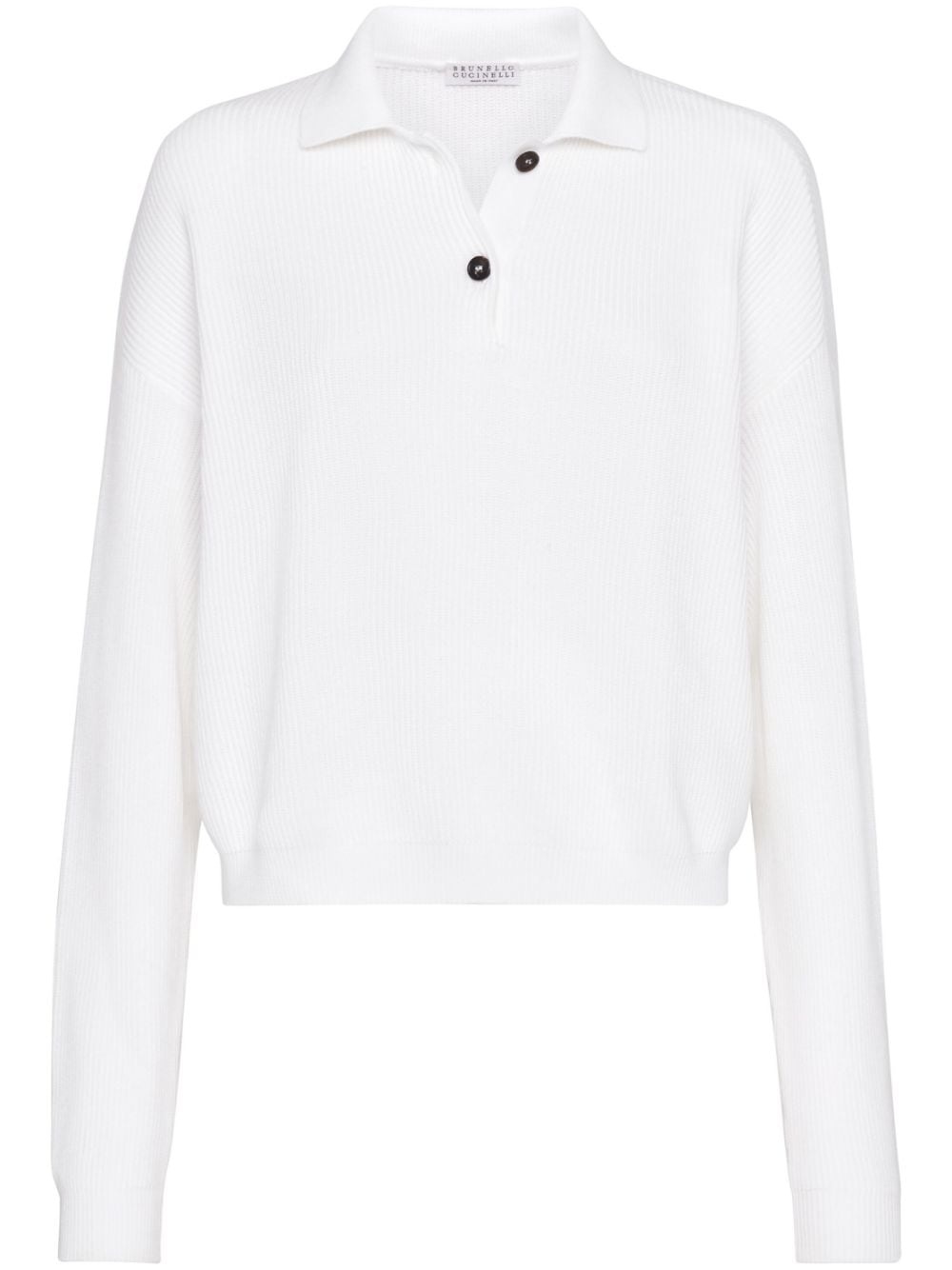 ribbed-knit polo-collar jumper Highlights - White - Cotton - Ribbed knit - Polo collar - Short front button fastening - Long sleeves - Straight hem Made in Italy Composition Cotton 100% SIZE & FIT Measurement SLEEVE LENGTH 16.92 in(43 cm) LENGTH 18.89 in(48 cm) WAIST 32.28 in(82 cm) BUST 40.94 in(104 cm)