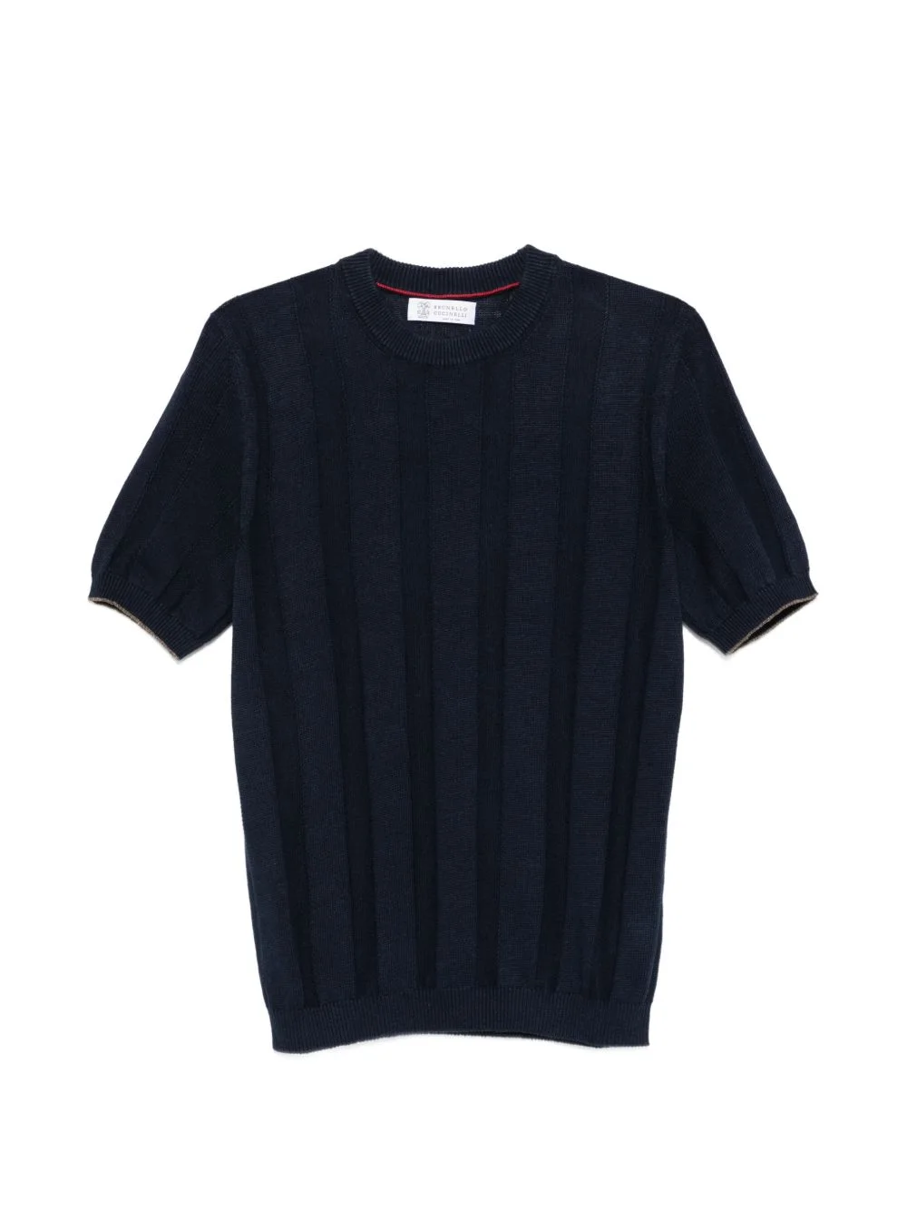 ribbed short-sleeve T-shirt Highlights - Navy blue - Ribbed knit - Crew neck - Short sleeves Made in Italy Composition Linen/Flax 77%, Cotton 23% Washing instructions Hand Wash