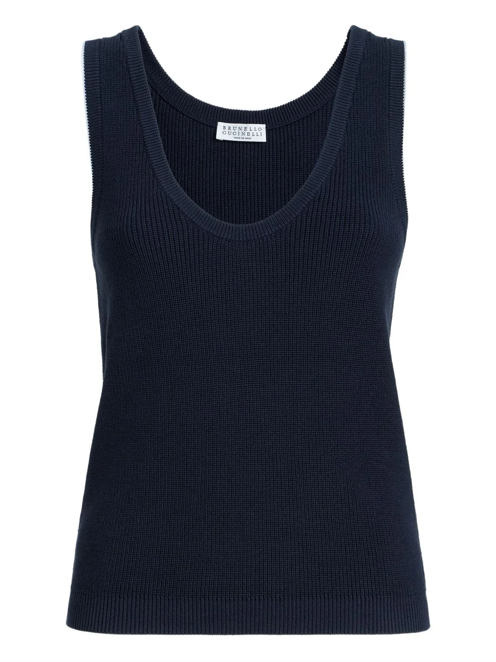 ribbed T-shirt Highlights - Blue - Ribbed knit - Sleeveless - Contrast trim Made in Italy Composition Cotton 100% Washing instructions Read Manufacturer Guidelines