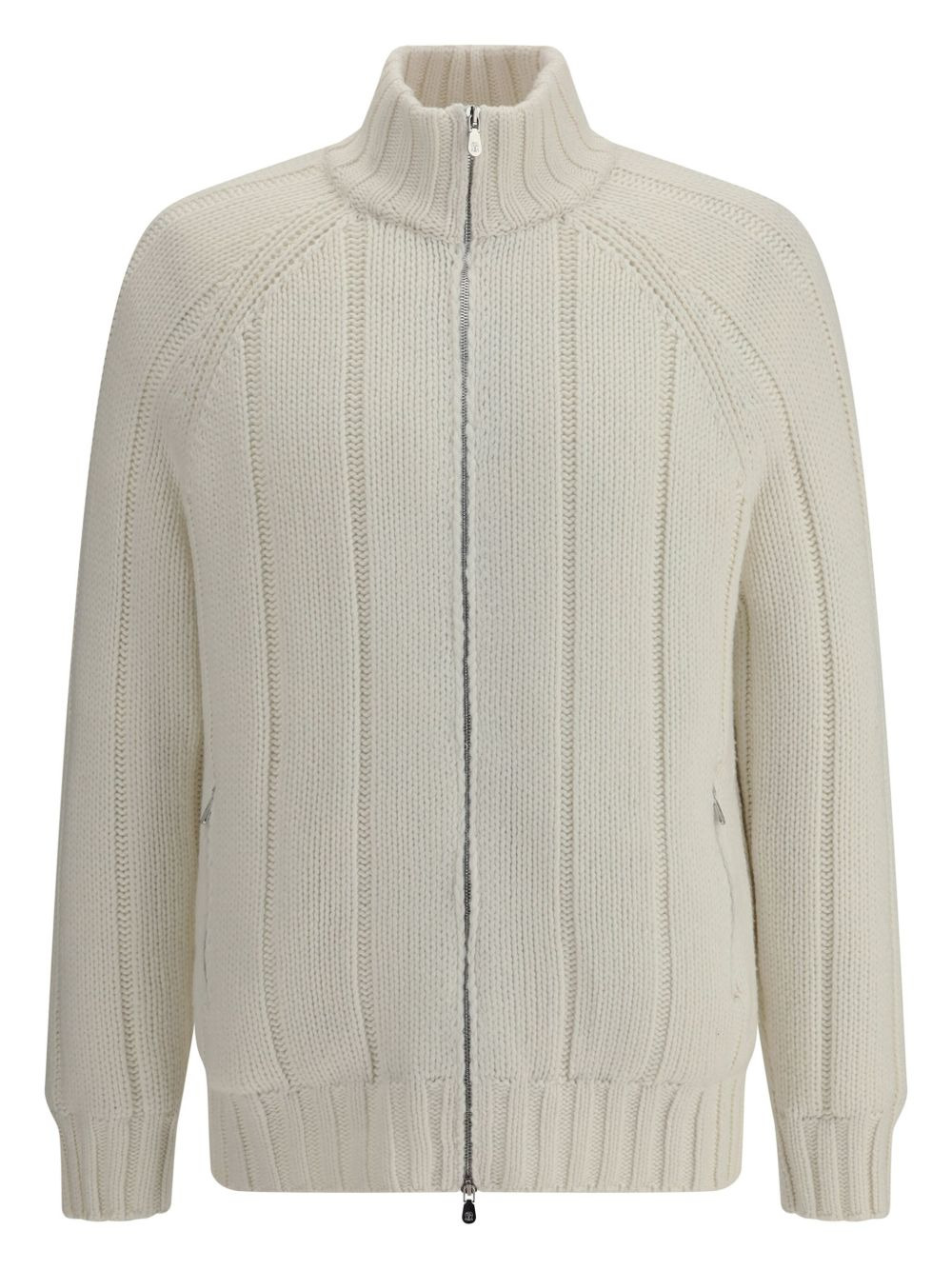 ribbed zip-front cashmere cardigan Highlights - Off-white - Ribbed collar - Double slider zip fastening - Vertical ribbed panels - Welt pockets Made in Italy Composition Cashmere 100% Washing instructions Read Manufacturer Guidelines
