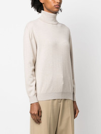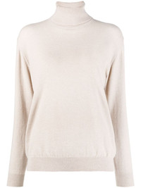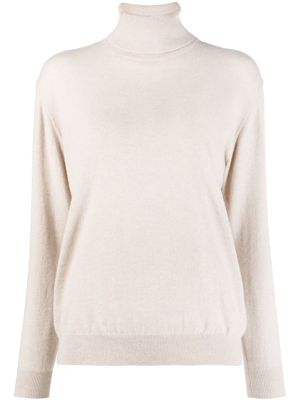 roll-neck cashmere jumper Brunello Cucinelli's distinctly polished style is exhibited with this cashmere jumper. Rendered in a light-beige hue, it is framed by a ribbed roll neckline for a classic finish. Highlights - Light beige - Cashmere - Ribbed trim - Roll neck - Long sleeves - Straight hem Made in Italy Composition Eco Brass 100%, Cashmere 100% SIZE & FIT Model measurements Height 5 ft 11 in(1.8 m) Bust/Chest 31.49 in(80 cm) Hips 35.82 in(91 cm) Waist 24.8 in(63 cm) FittingInformation Designed for a relaxed fit, this piece allows for comfort and movement when worn The ribbed hem offers a close, comfortable fit Made with a midweight knit, this piece offers some stretch This piece fits true to size – take your usual size