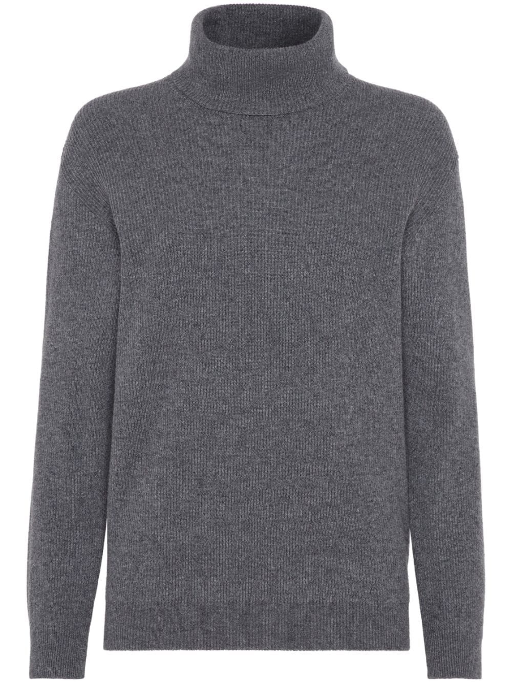 roll-neck cashmere jumper Highlights - Grey - Cashmere - Ribbed knit - Roll neck - Drop shoulder - Long sleeves - Straight hem Made in Italy Composition Cashmere 100% Washing instructions Read Manufacturer Guidelines