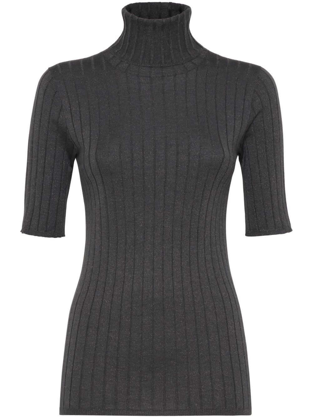roll-neck top Highlights - Anthracite grey - Cashmere-silk blend - Ribbed knit - Roll neck - Short sleeves - Straight hem Made in Italy Composition Cashmere 51%, Silk 22%, Nylon 20%, Polyester 7%
