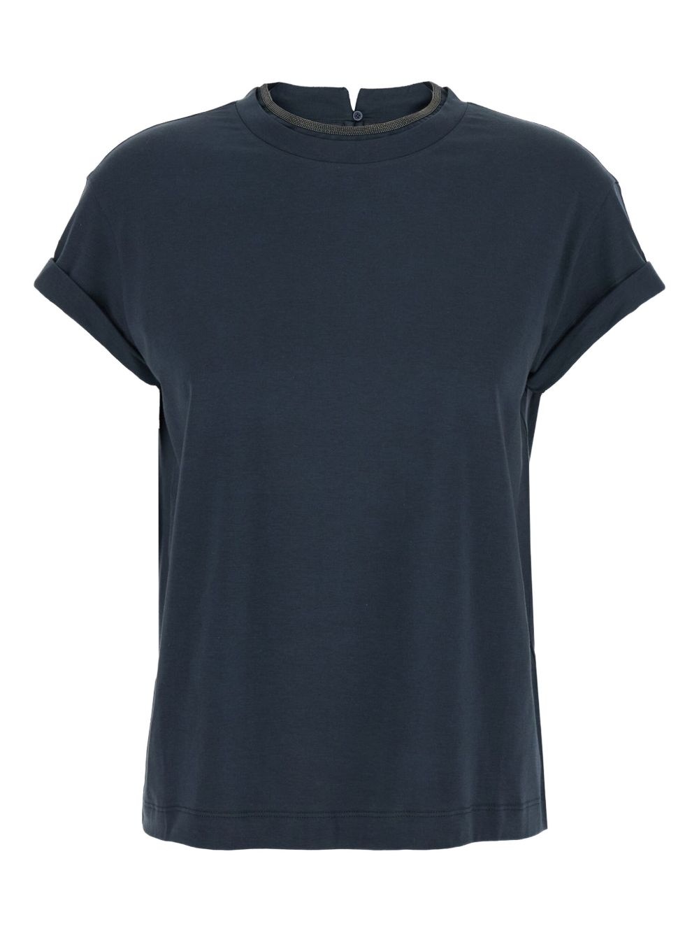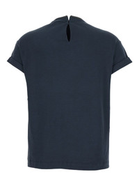 rolled-sleeves T-shirt Highlights - Navy blue - Crew neckline - Keyhole opening at the back - Rolled cuff sleeves Made in Italy Composition Cotton 93%, Elastane 7%