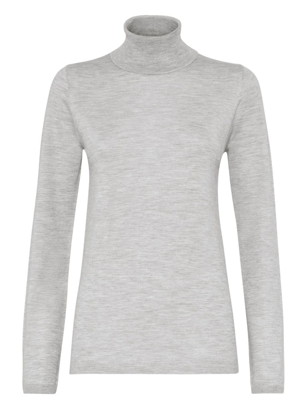rollneck fine-knit jumper Highlights - Light grey - Fine knit - Roll neck - Long sleeves - Straight hem - Slim fit Made in Italy Composition Cashmere 70%, Silk 30% SIZE & FIT FittingInformation This piece fits true to size. We recommend you get your regular size Cut for a slim fit Made with a lightweight fabric Washing instructions Hand Wash