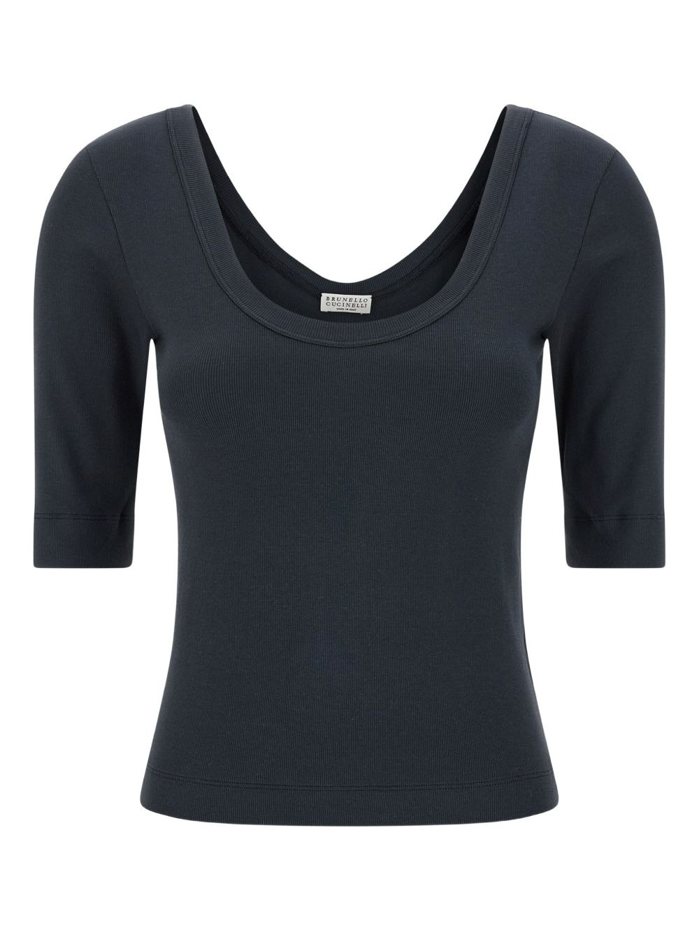 round-neck T-shirt Highlights - Blue - Round neck - Three-quarter sleeves - Logo detail Made in Italy Composition Cotton 94%, Elastane 6% Washing instructions Hand Wash