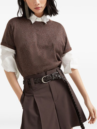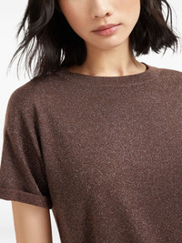 round-neck T-shirt Highlights - Chocolate brown - Round neck - Short sleeves - Straight hem Made in Italy Composition Cashmere 51%, Silk 22%, Polyamide 20%, Metallic Fibre 7%