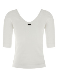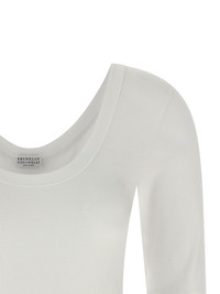 round-neck T-shirt Highlights - White - Round neck - Three-quarter sleeves - Black detail Made in Italy Composition Cotton 94%, Elastane 6% Washing instructions Read Manufacturer Guidelines