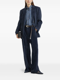 Sartorial straight-leg trousers Highlights - Navy blue - Hook and zip fly fastening - Belt loops - Slip pockets to the sides - Two rear welt pockets Made in Italy Composition Viscose 75%, Polyester 25%