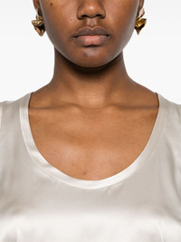 satin sleeveless top Highlights - Light grey - Scoop neck - Sleeveless Made in Italy Composition Silk 96%, Elastane 4% SIZE & FIT Model measurements Height 5 ft 10 in(1.77 m) Bust/Chest 34.64 in(88 cm) Hips 35.43 in(90 cm) Waist 24.8 in(63 cm) FittingInformation Designed for a slim fit that sits just away from the body offering a close yet comfortable fit Made from a midweight stretch fabric, this piece offers elasticity and flexibility when worn