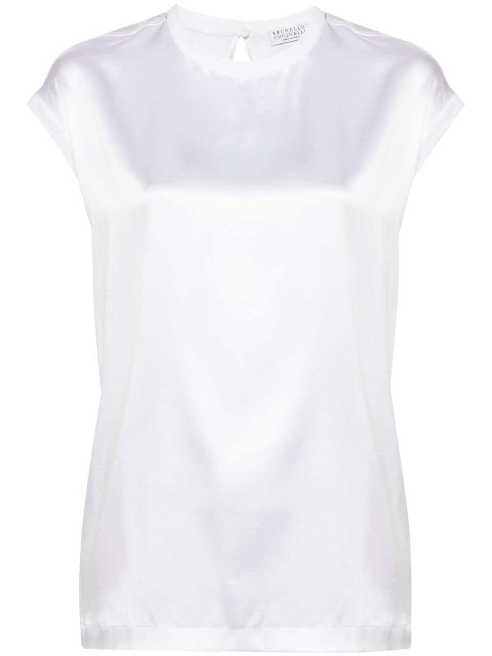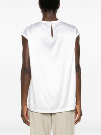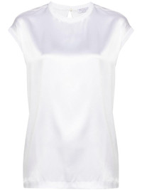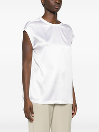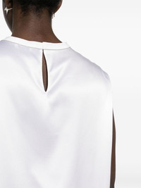 satin stretch-silk top Highlights - White - Stretch-silk - Satin finish - Round neck - Cap sleeves - Curved hem - Unlined Made in Italy Composition Silk 96%, Spandex/Elastane 4% SIZE & FIT Model measurements Height 5 ft 10 in(1.77 m) Bust/Chest 32.28 in(82 cm) Hips 35.03 in(89 cm) Waist 25.19 in(64 cm) FittingInformation Designed to be unstructured, offering a loose fit throughout Made from a lightweight stretch fabric, this piece offers elasticity and flexibility when worn This piece fits true to size – take your usual size Washing instructions Hand Wash