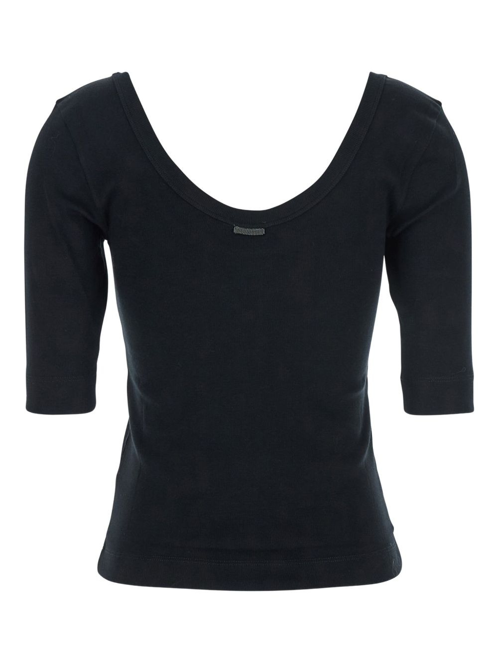 scoop-neck ribbed T-shirt Highlights - Black - Three-quarter sleeves - Scoop neck - Ribbed texture - Embellished detail Made in Italy Composition Cotton 94%, Elastane 6% Washing instructions Hand Wash