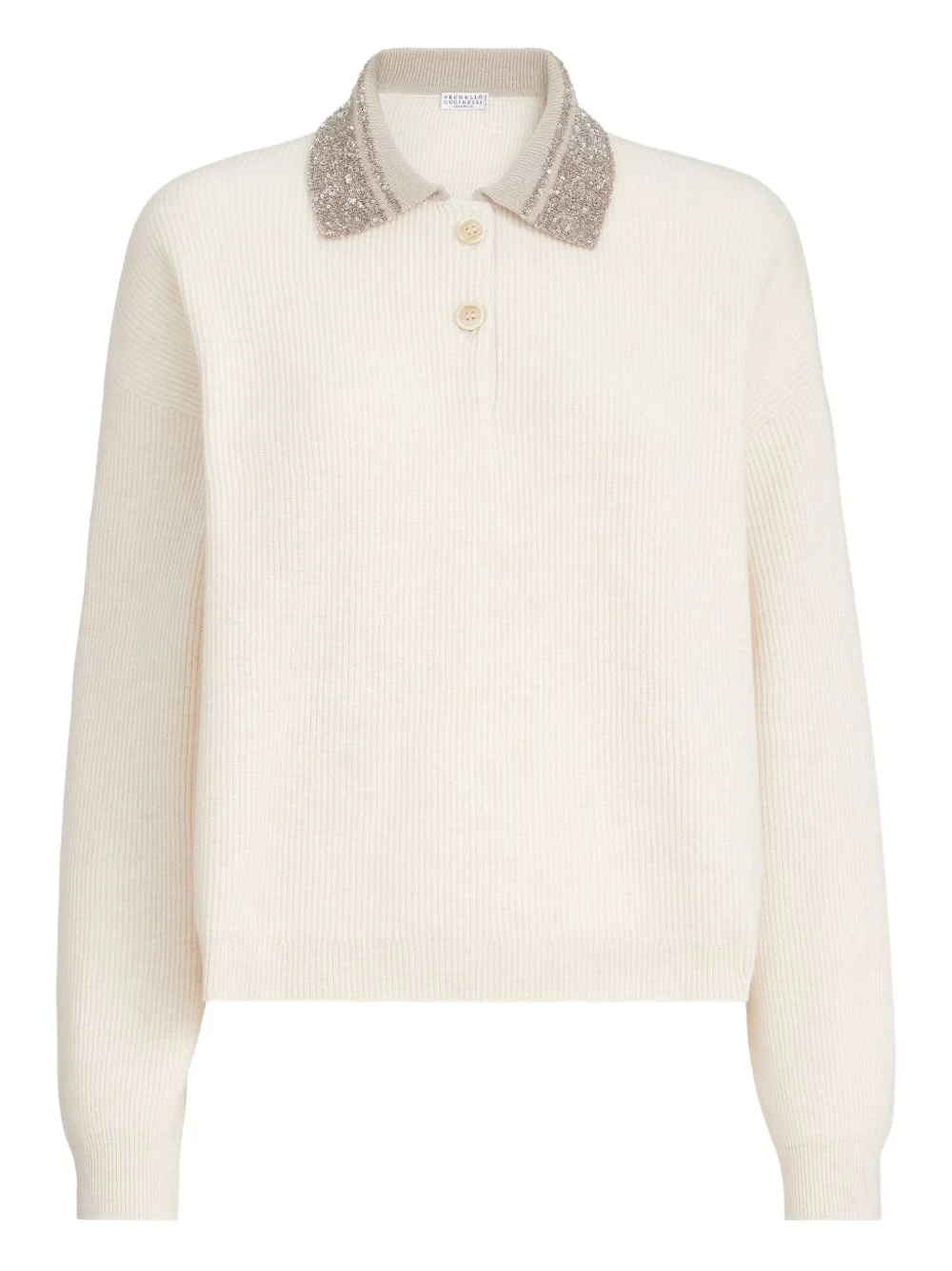sequin-collar sweater Highlights - Beige - Sequin embellishment - Point collar - Button fastening - Long sleeves Made in Italy Composition Virgin Wool 60%, Cashmere 30%, Silk 10% Washing instructions Read Manufacturer Guidelines