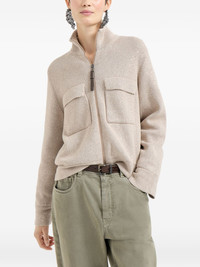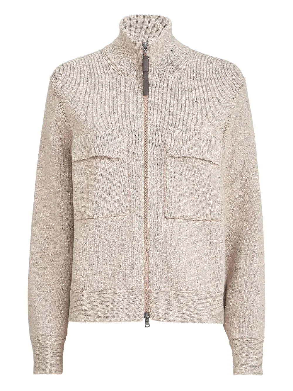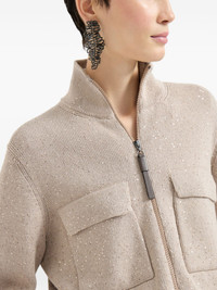 sequin-embellished cardigan Highlights - Beige - Sequin embellishment - Knitted construction - Two front pockets - Zip fastening - High neck - Long sleeves Made in Italy Composition Cotton 96%, Polyester 4% Washing instructions Hand Wash