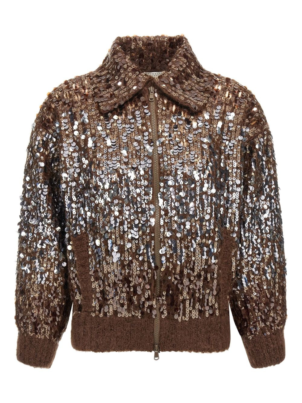sequin-embellished cardigan Highlights - Brown - Sequin embellished - Front zip closure - Pockets - Long cuffed sleeves Made in Italy Composition Mohair 81%, Polyamide 11%, Wool 8% Washing instructions Read Manufacturer Guidelines