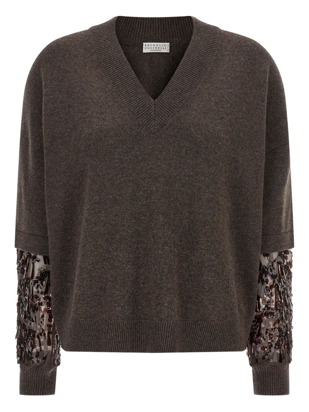 sequin-embellished cashmere sweater Highlights - Brown - Cashmere - V-neck - Double-layered long sleeves - Sequin embellishment Made in Italy Composition Cashmere 100% Washing instructions Read Manufacturer Guidelines