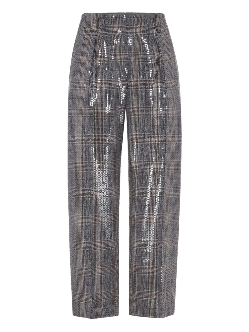 sequin-embellished check-pattern trousers