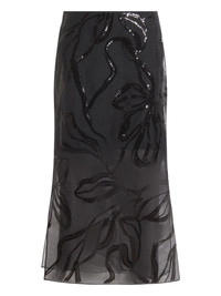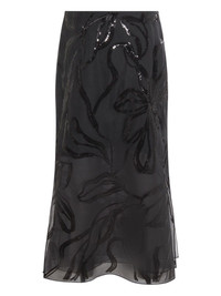 sequin-embellished flared skirt Highlights - Black - Sequin embellishment - Floral pattern - Flared hem - Midi length Made in Italy Composition Virgin Wool 75%, Nylon 23%, Elastane 2% Washing instructions Read Manufacturer Guidelines