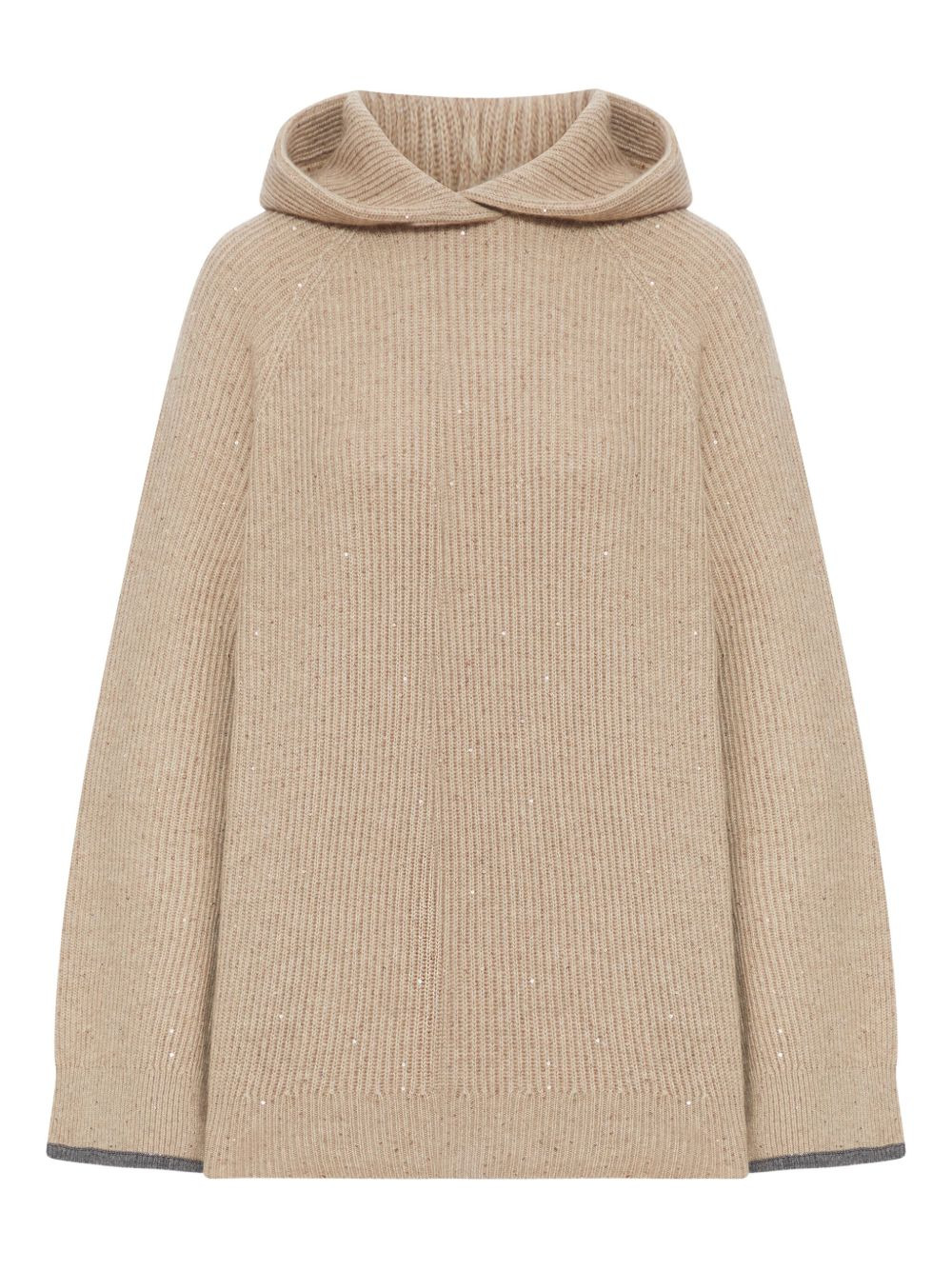 sequin-embellished hooded cashmere sweater Highlights - Beige - Cashmere - Ribbed knit - Hooded neckline - Sequin embellishments - Grey cuffs Made in Italy Composition Cashmere 100% Washing instructions Read Manufacturer Guidelines