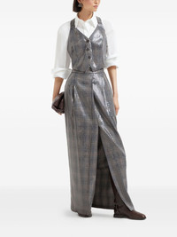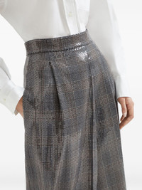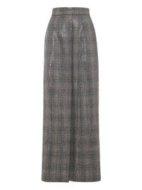 sequin-embellished long skirt Highlights - Charcoal grey - Sequin embellishment - Checked pattern - High waist - Front slit - Pleated detailing Made in Italy Composition Lining: Silk 100% Outer: Virgin Wool 100%, Sequin 100% Washing instructions Read Manufacturer Guidelines