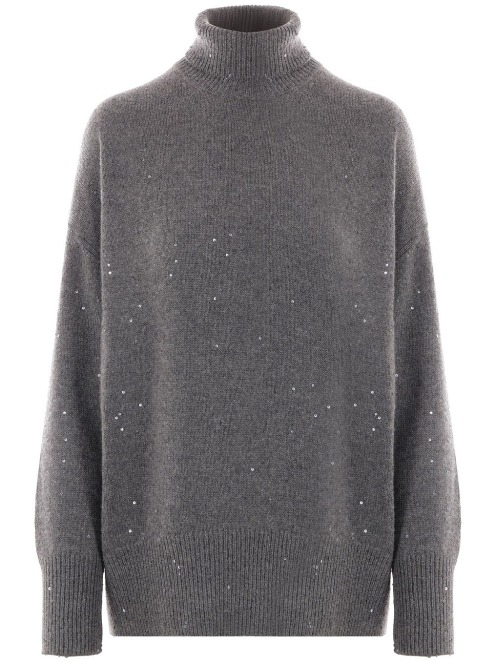 sequin-embellished roll-neck jumper Highlights - Grey - Cashmere-silk blend - Knitted construction - Sequin embellishment - Roll neck - Long sleeves - Ribbed edge - Straight hem Made in Italy Composition Cashmere 80%, Silk 20%