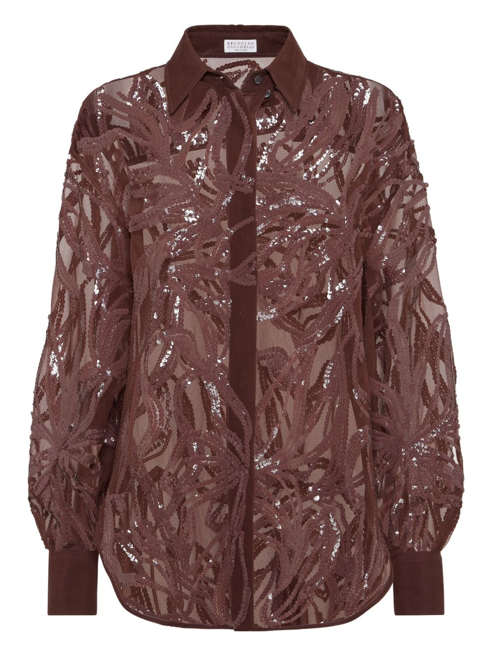 sequin-embellished shirt Highlights - Brown - Silk - Sequin embellishment - Floral pattern - Long sleeves - Button fastening Made in Italy Composition Silk 100% Washing instructions Specialist Cleaning
