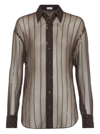 sequin-embellished shirt Highlights - Chocolate brown - Front button fastening - Buttoned-cuff sleeves - Long sleeves - Semi-sheer construction Made in Italy Composition Silk 100% Washing instructions Read Manufacturer Guidelines