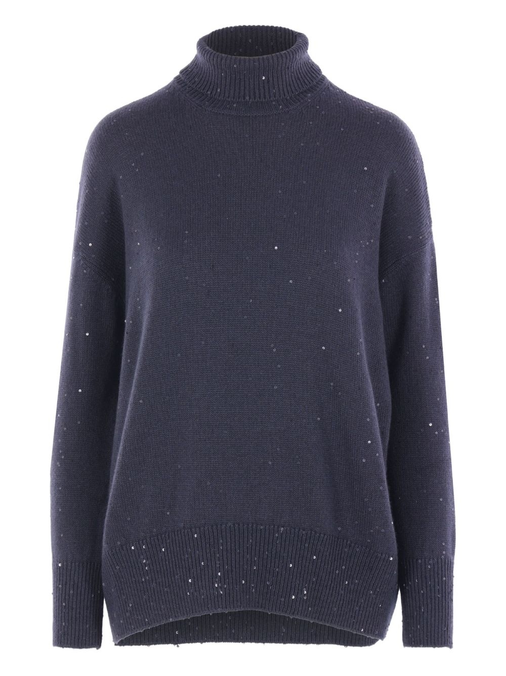 sequin-embellished sweater Highlights - Blue - Turtleneck neckline - Scattered sequins - Long sleeves - Relaxed fit - Ribbed hem Made in Italy Composition Cashmere 80%, Silk 20% Washing instructions Read Manufacturer Guidelines