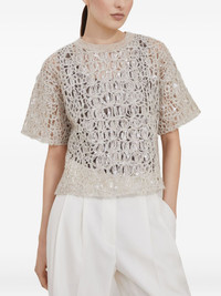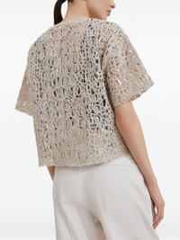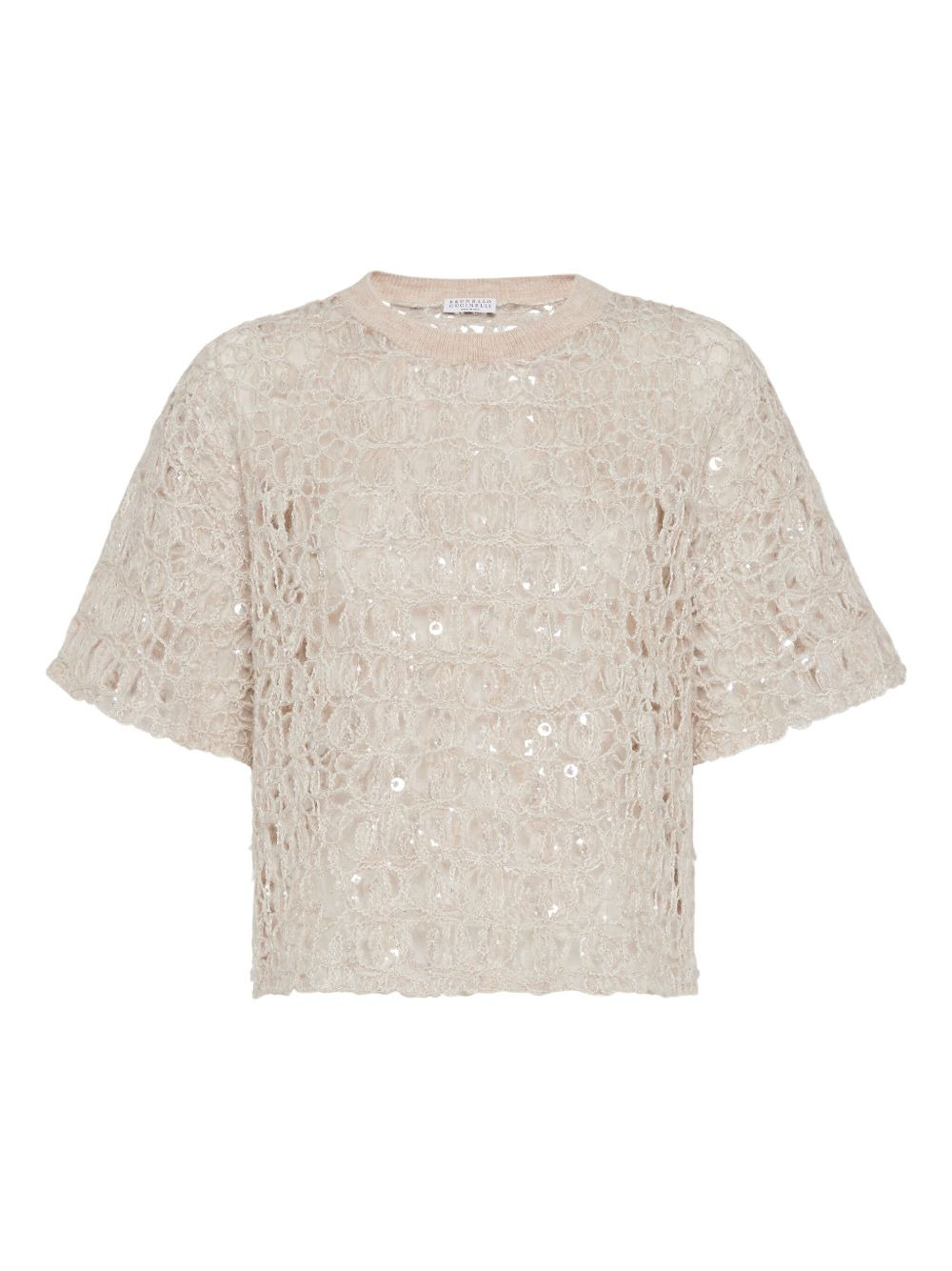 sequin-embellished T-shirt Highlights - Beige - All-over sequins - Short sleeves - Ribbed neckline Made in Italy Composition Fabric 49%, Mohair 31%, Nylon 20%
