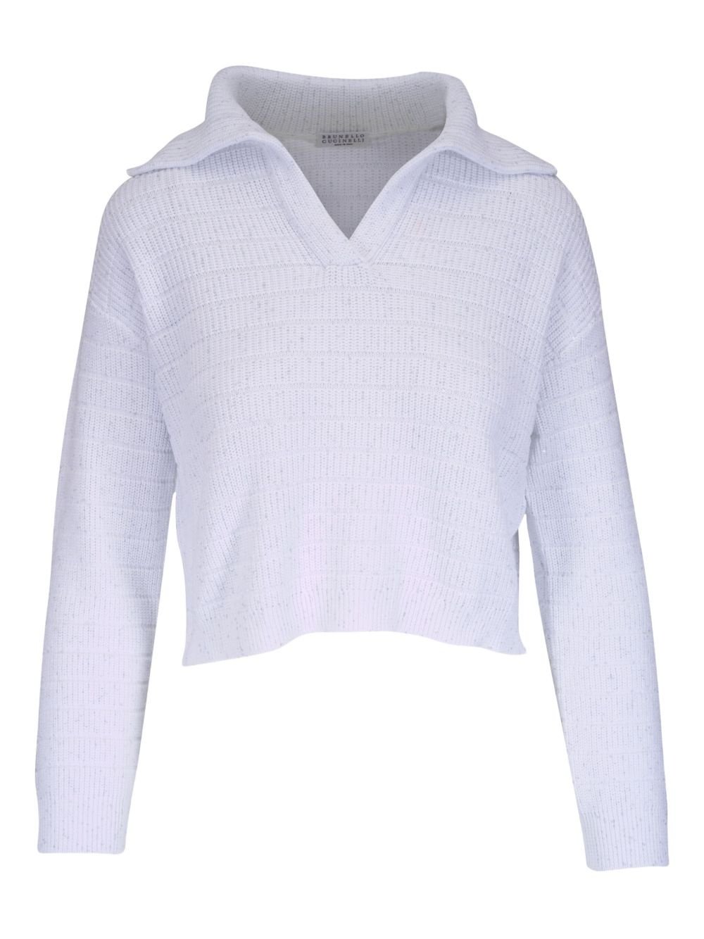 sequin-embellished top Highlights - White - Spread collar - Long sleeves - Cropped Made in United States Composition Cotton 96%, Polyester 4% Washing instructions Dry Clean Only