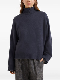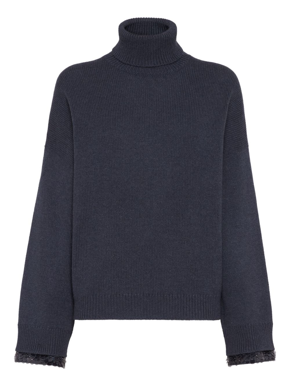 sequin-embellished turtleneck sweater Highlights - Dark blue - Wool blend - Turtleneck neckline - Long sleeves - Sequin-embellished cuffs Made in Italy Composition Virgin Wool 60%, Cashmere 30%, Fabric 10% Washing instructions Hand Wash