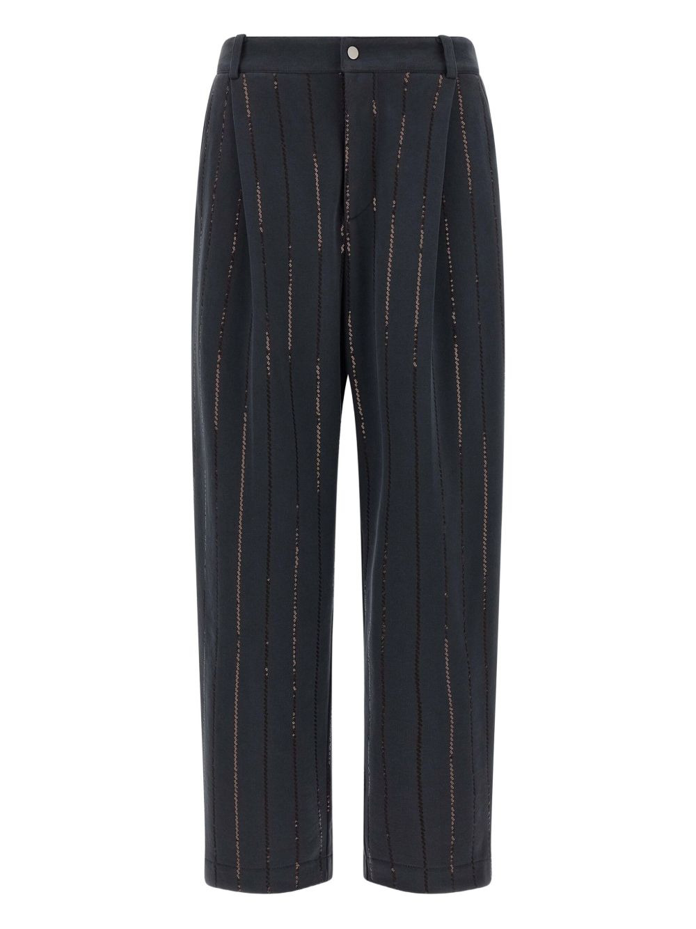 sequin-striped pinstripe trousers Highlights - Black - Sequin pinstripe pattern - Elastic waistband - Snap button closure - Zip fly Made in Italy Composition Cotton 100% Washing instructions Read Manufacturer Guidelines