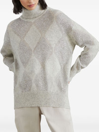 Wool and mohair dazzling argyle turtleneck sweater