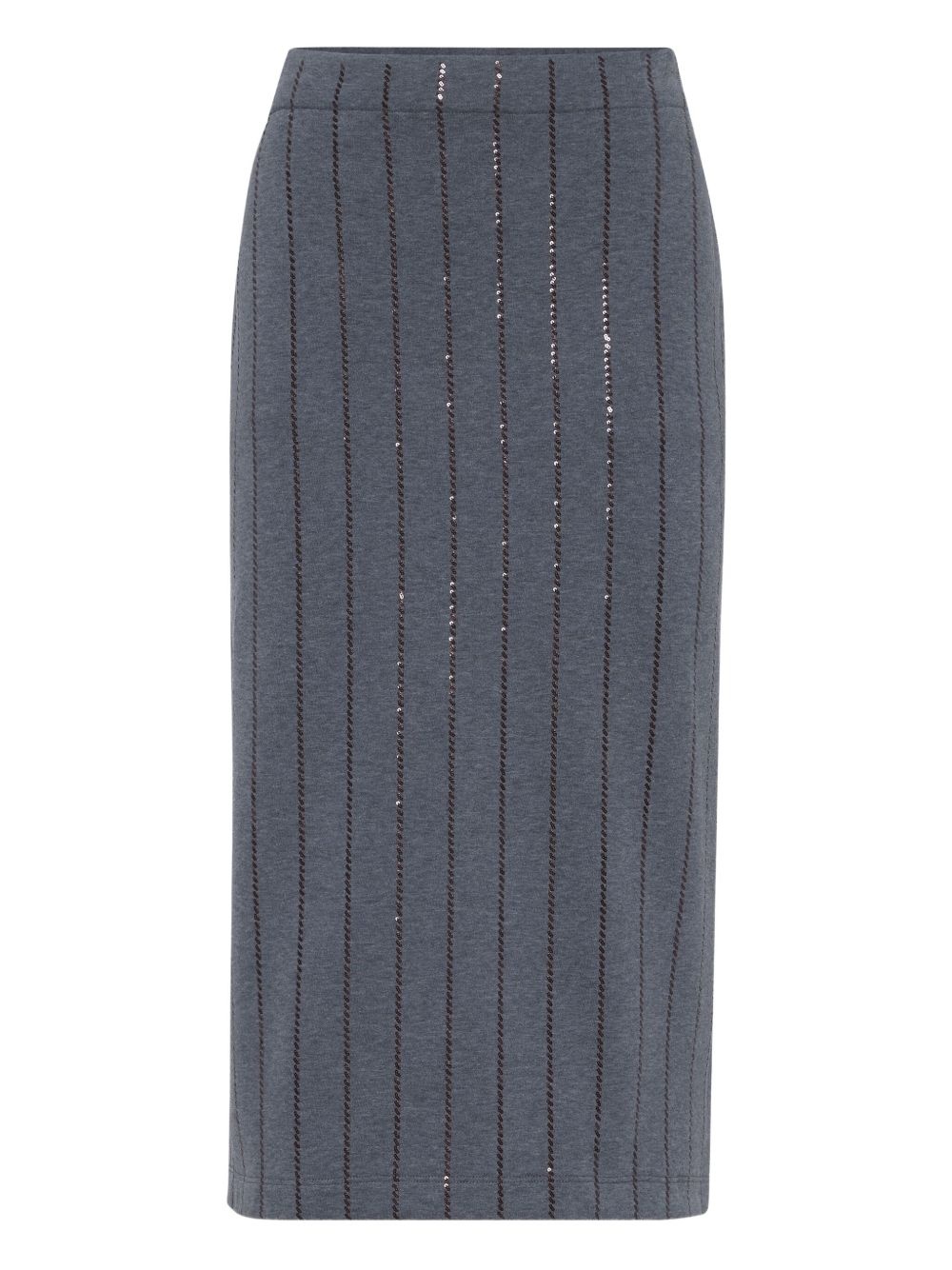 Cotton smooth French terry midi skirt with dazzling chalk stripe embroidery