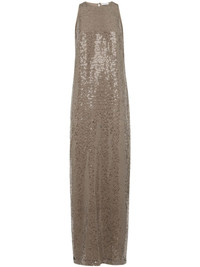 sequinned silk column maxi dress Highlights - Taupe brown - Silk - Sequin design - Column silhouette - Keyhole detail to the rear - Round neck - Sleeveless - Single rear button fastening - Straight hem Made in Italy Composition Silk 100%