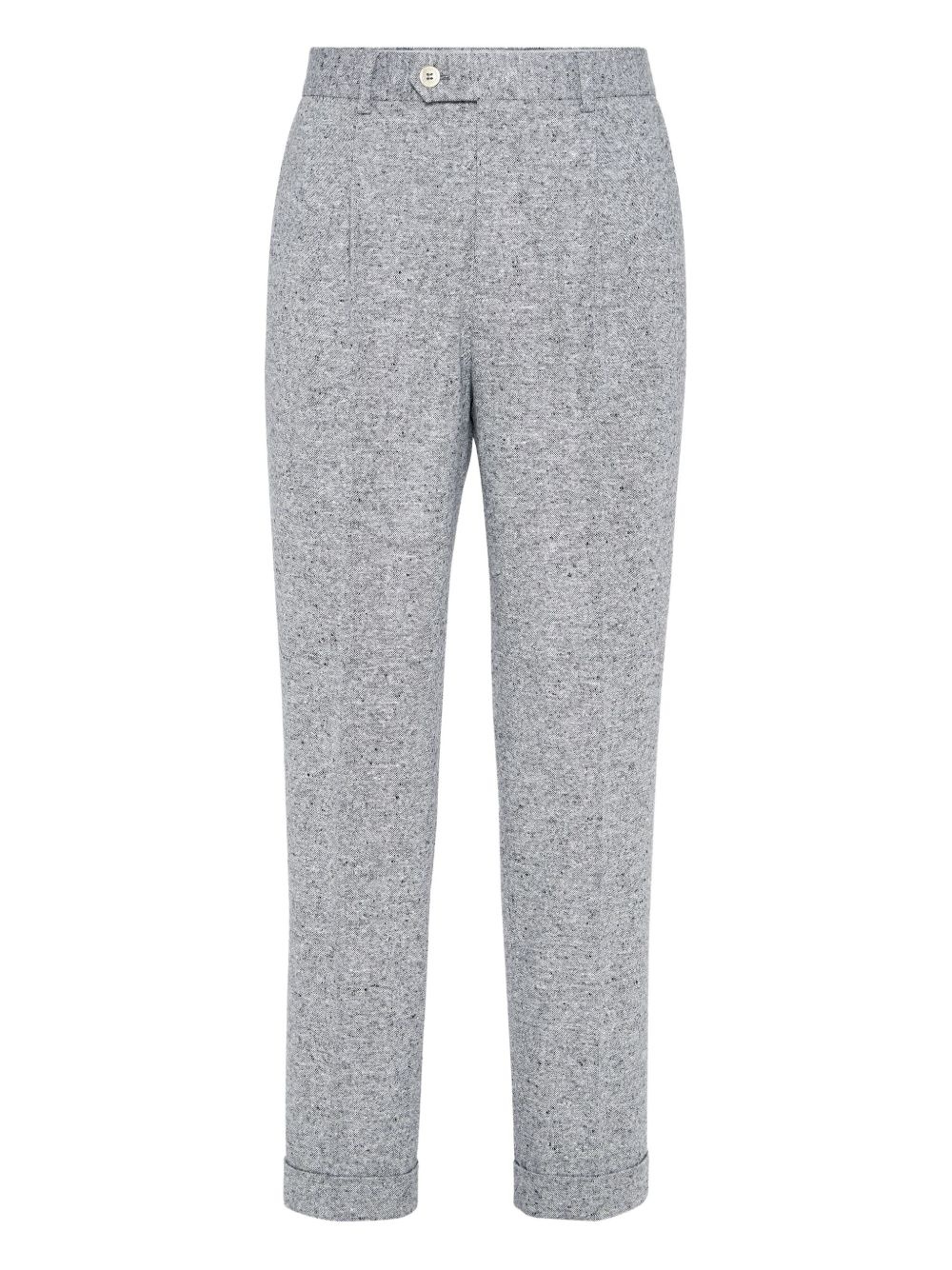 Wool and cashmere flecked grisaille leisure fit trousers with pleat