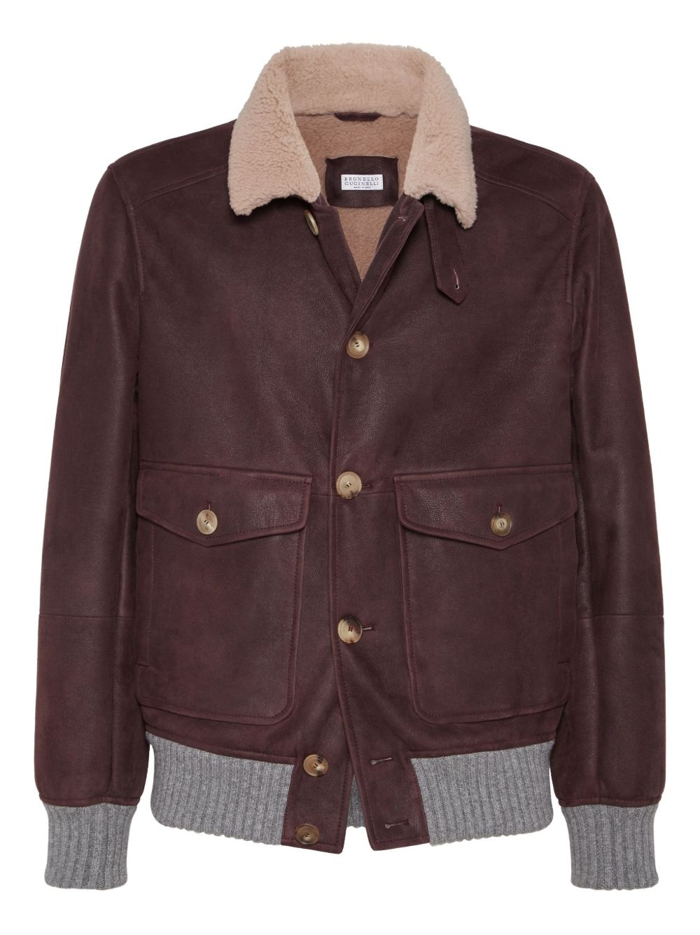 shearling-collar leather jacket Highlights - Burgundy - Lambskin leather - Shearling collar - Button fastening - Welt pockets - Ribbed cuffs Made in Italy Composition Lining: Lamb Shearling 100% Outer: Lamb Fur 100% Washing instructions Specialist Cleaning