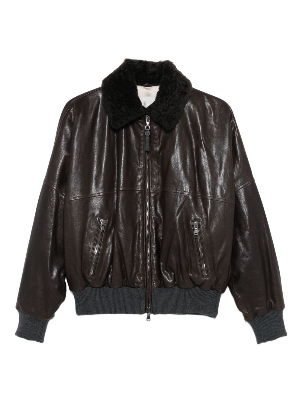 shearling-collar leather jacket