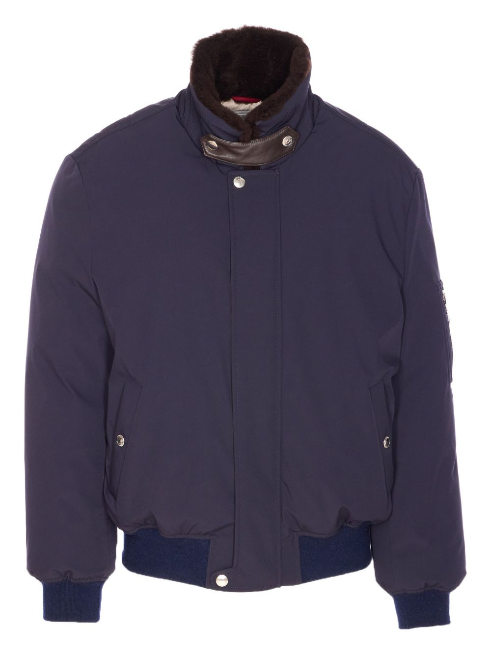 shearling-collar padded jacket Highlights - Blue - Shearling collar - Zip fastening - Zipped sleeve-pocket - Padded design - Buttoned welt pockets Made in Italy Composition Polyamide 88%, Elastane 12% Washing instructions Read Manufacturer Guidelines